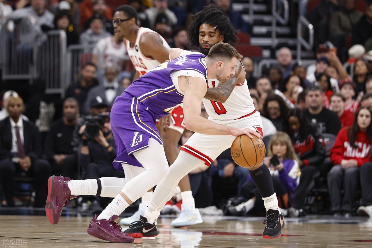 湖人客场挑战公牛,公牛先发:奥科罗、史密斯、武切维奇、布泽利斯、怀特!湖人先发:詹姆斯、拉拉维亚、艾顿、斯玛特、东契奇!